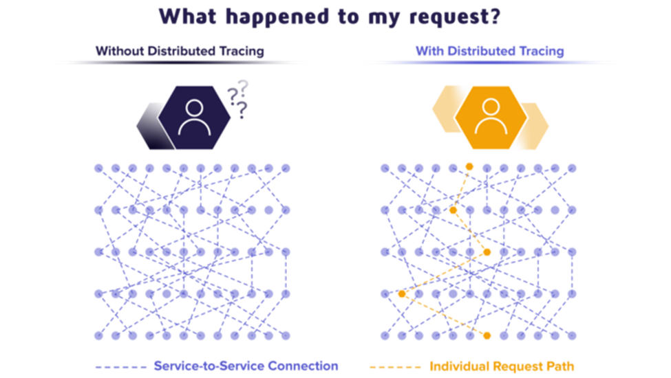 Distributed Tracing is the process of tracing every single request from the point of origin up to all the services it touches by analyzing the data. Every request will have a Trace ID, timestamp, and other useful metadata. With this, we can see how long does the request spans across a particular microservice, and also we can get the metrics to improve the latency.