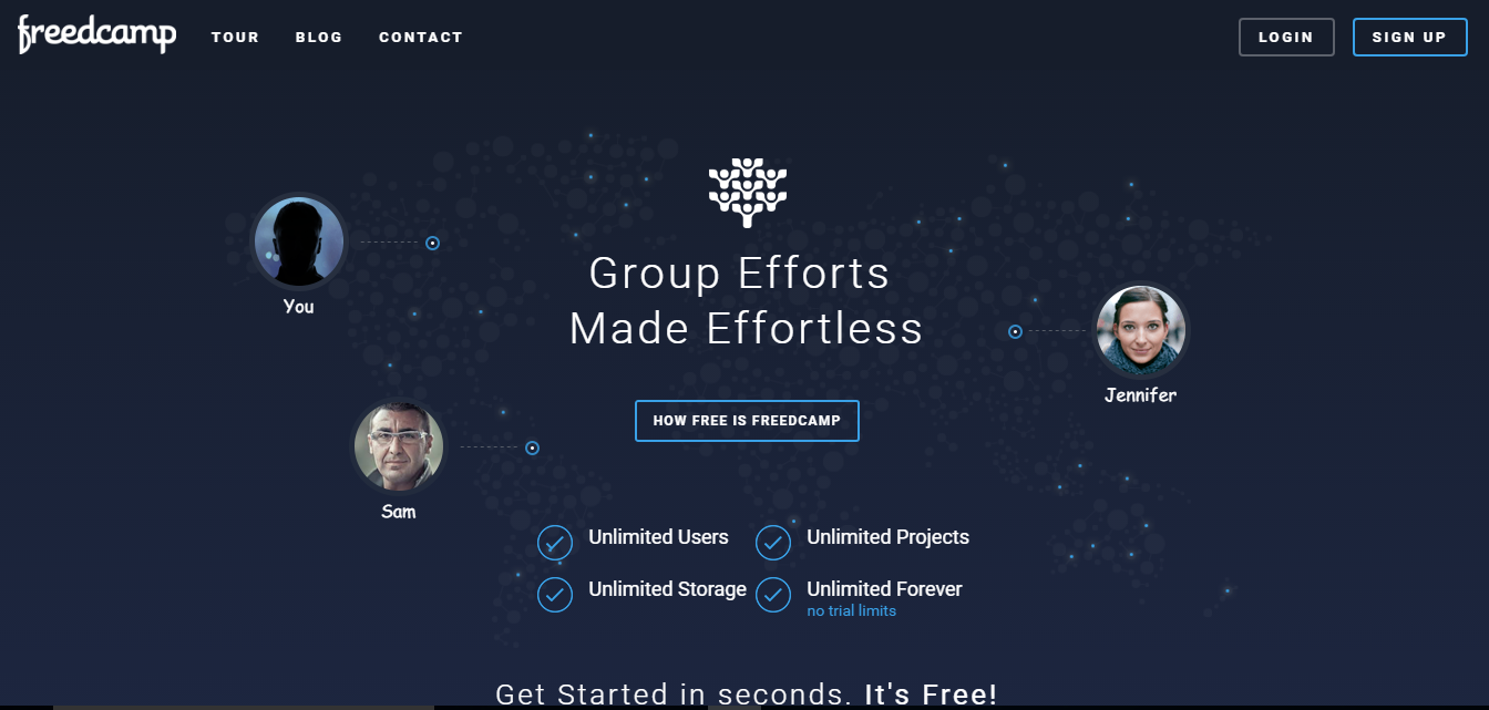 Freedcamp is a free project management system that allows unlimited users, unlimited projects and unlimited storage. It offers a list feature, and enables you to move tasks from the planning stage through completion. Thereâs also a calendar option that lets you see events and tasks in a day, week or month view.