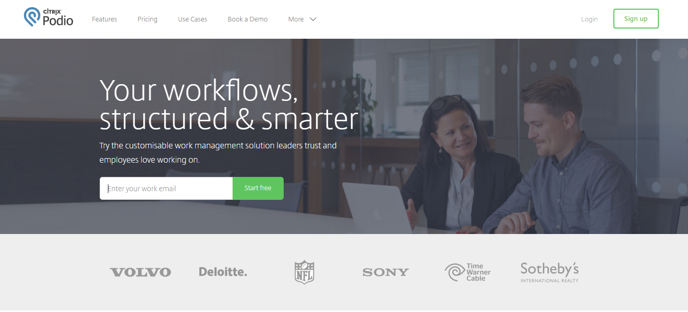 Podio offers âa fresh take on collaborating and getting organized,â with a slew of features and capabilities for everything from creating courses to planning and managing marketing initiatives. It is based on an app-style structure, allowing users to activate a variety of apps based on their needs for a completely customized project management system.
