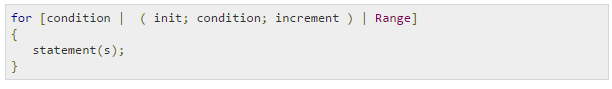 The init statement will often be a short variable declaration, and the variables declared there are visible only in the scope of the for statement.