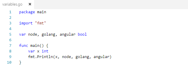 A var statement can be at package or function level. We see both in the example below.